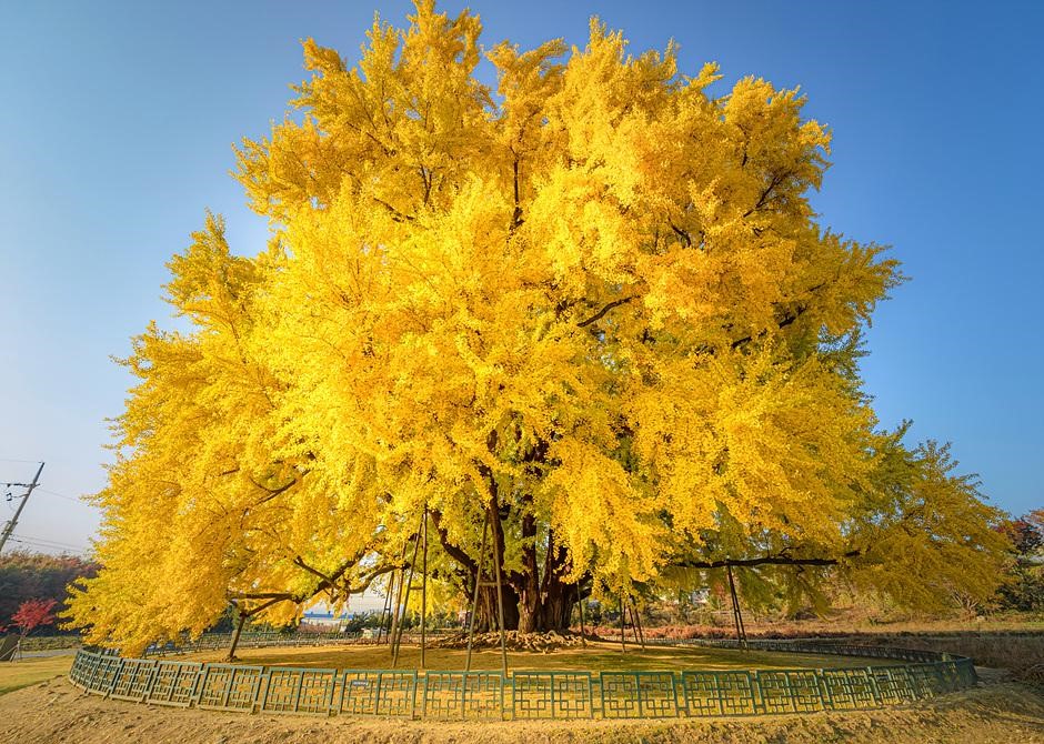 압도적인 크기를 자랑하는 거대한 은행나무 앞에 서있으면