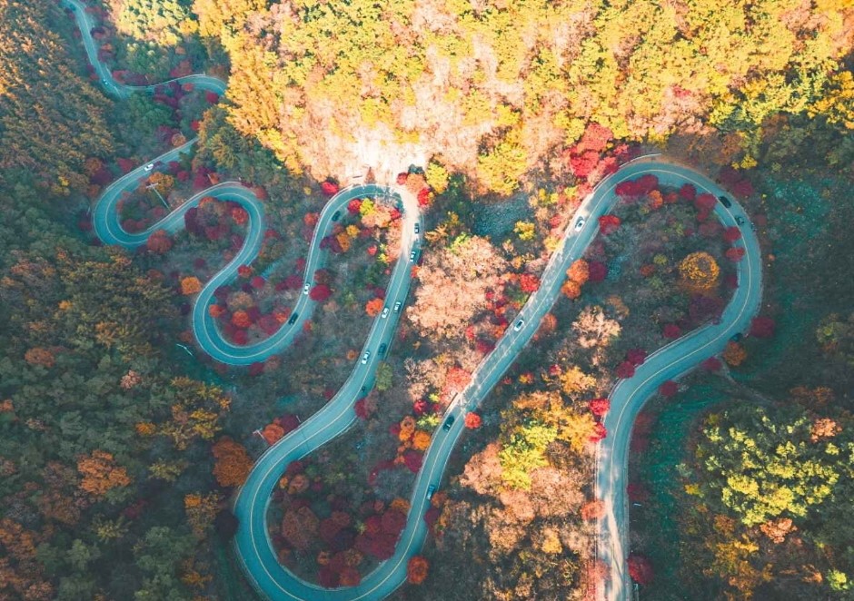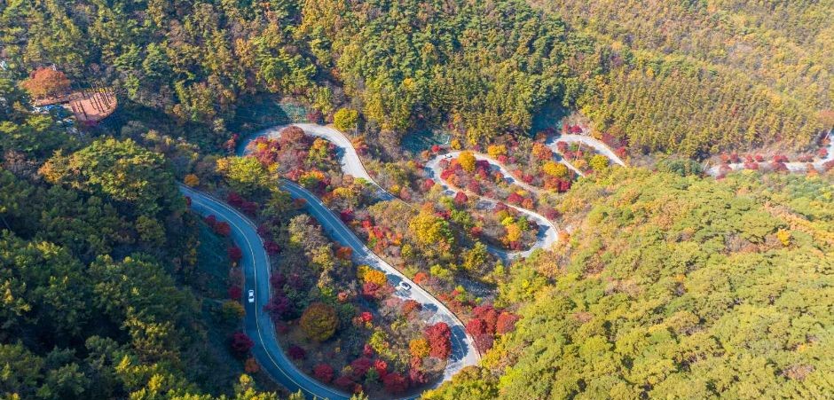 빼곡하게 들어서 가을 단풍이 끝없이 이어지는 장관이 펼쳐지는 곳입니다.